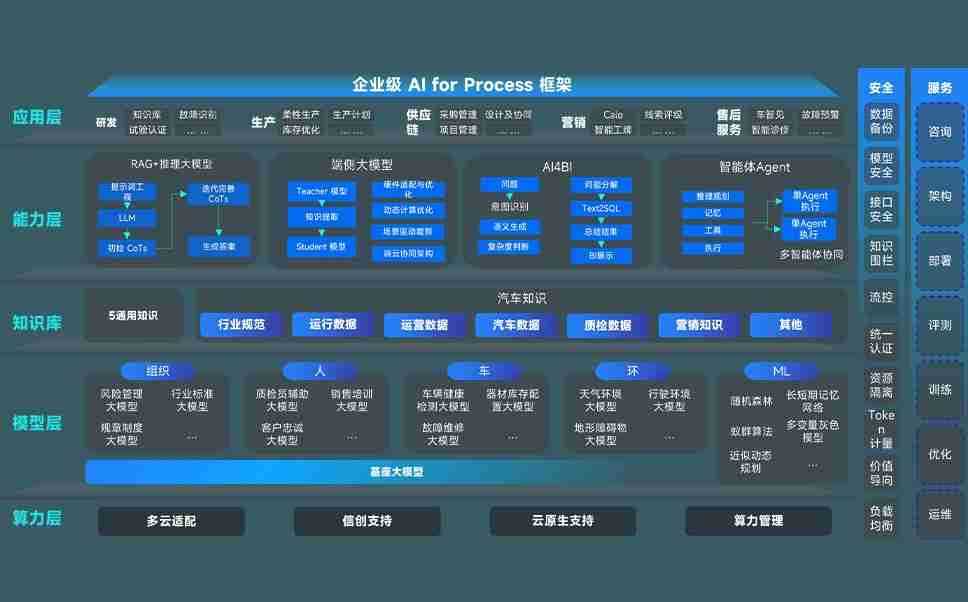 端到端的一站式AI工作空间深度融合了从企业战略规划到日常经营的全流程业务板块,,,定向解决车企内部领域多、、部门多、、、、链条长、、场景碎片化等难题,,支持车企快速构建以AI为核心的生产力写作体系,,实现任务执行与AI能力的无缝集成与交互